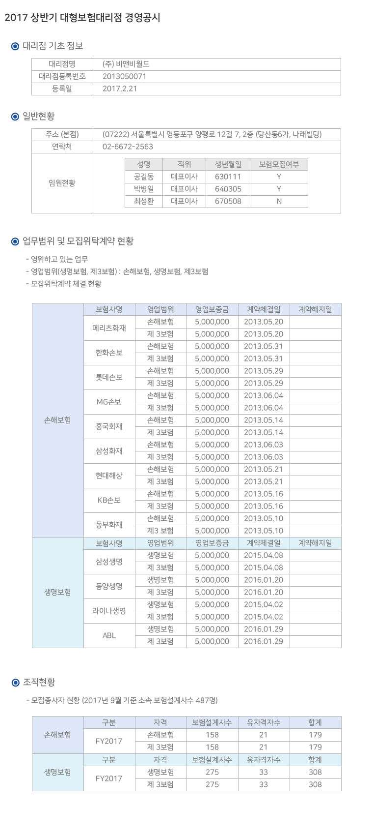 보험판매회사가 인터넷 홈페이지에 공시해야 하는 경영사항에 대하여